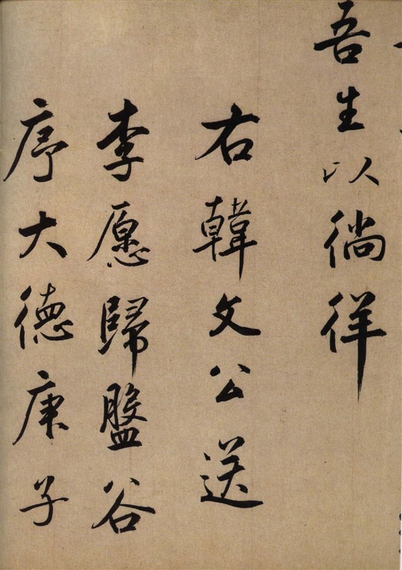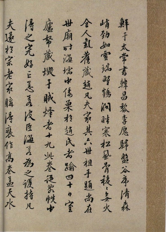 此卷《韩昌黎送李愿归盘谷序》,行句系自”夫前呵从者塞途”起(据《韩昌黎集》),其前尚缺一百零八字。有”清森峭劲、风骨棱棱”之评。