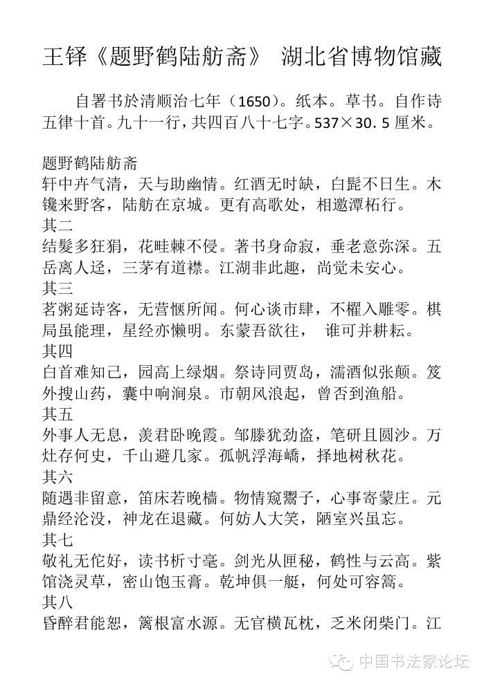 王铎草书《题野鹤陆舫斋诗十首》