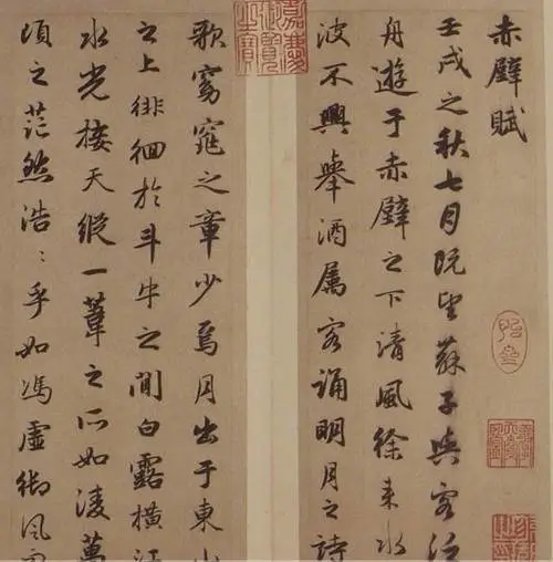 《前后赤壁赋》是元代书法宗师赵孟頫楷书奇珍。元代书法,从总体上来说是一个复古为创新的时代,元代诸家以唐人楷书法为基础,极力规模二晋,形成了一代风气。
