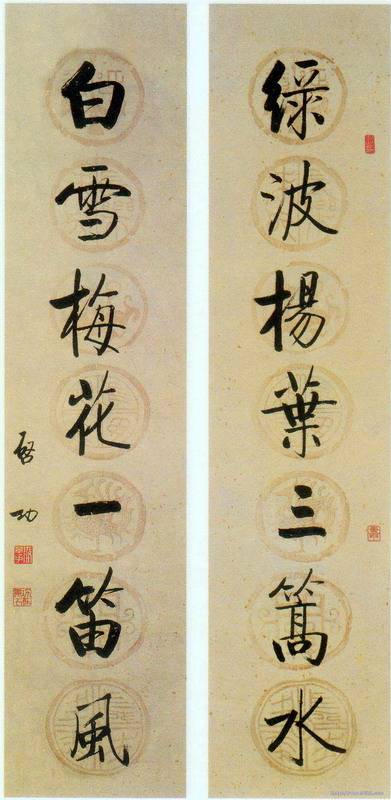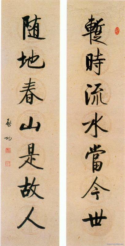 书贵瘦硬方通神——启功精品行书七言联欣赏 作者: 墨池选摘 启功先生是当代著名学者、画家和书法家。他著作丰富,通晓语言文字学,甚至对已成为历史陈迹的八股文也很有研究;他做得一手好诗词,同时又是古书画鉴定家,尤精碑帖之学。欣赏他的书法作品,总要联想到他对碑帖的精深研究,因为他对碑帖的研究和他的书法艺术成就有着不可分割的联系,碑帖之学是明清两代兴起的一门学问,这门学问现在随着地下墨迹的不断出土,开辟了新的境界。他就是这片园地的开拓者之一。