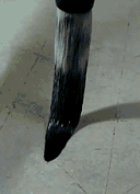 所以临帖可先用硬笔,主要在字的结构和神韵上下功夫,熟练了以后,再用软笔象硬笔那样临帖。这是在工具使用上,从易到难转换的一种好方法。但是执笔还得像古人执笔的方法(按、压、匀、格、抵)。这样才能达到中锋运笔,发挥毛笔的特性。
