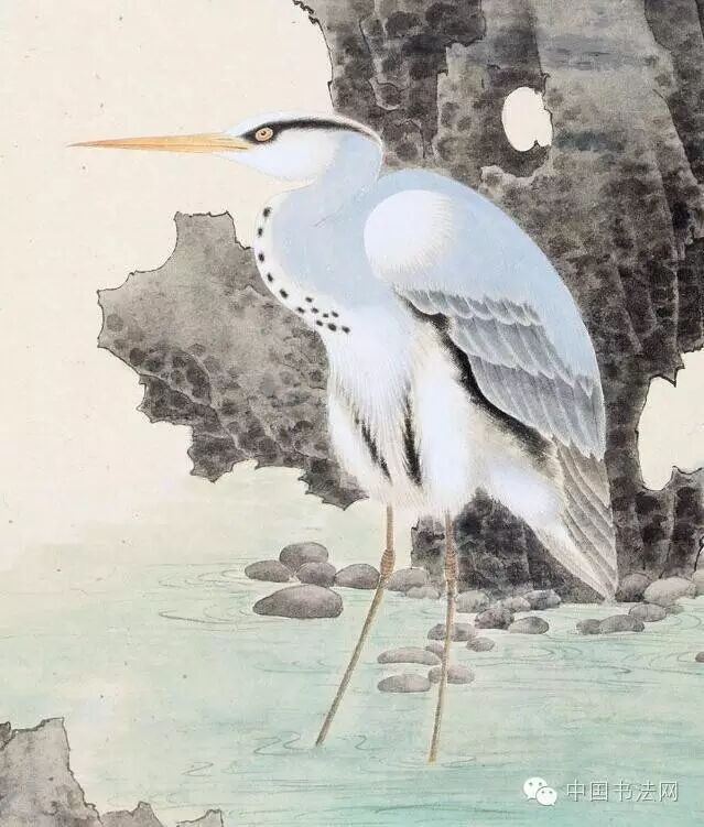 谢稚柳先生的画作在近年越发为学术界与收藏界所激赏,先生早年以陈老莲筑基,直逼其神理,古穆浓丽,典雅蕴藉,三十岁之后上溯两宋高华,西出敦煌,远追五代三唐的宏奥,旁及元人的水墨放逸。张大千曾多次对大风堂弟子坦言,自己在花鸟画方面的造诣不如谢稚柳。《拒霜沙鹭》是现今存世尺幅最大的一件先生盛年工笔花鸟画力作。画面以骨法勾勒湖石,皴染分明是宋徽宗的家数,几组芙蓉掩映其间,摇曳生姿,设色淡雅雅,丝丝不苟的神貌,散发出宋人院体绘画特有的拙朴。一只沙鹭徜徉水中,深厚繁复的点染,凝练沉稳的勾勒,纤巧秀雅的仪态不仅贴近古人的灵魂更加贴近自然。画中题款书法已经逐渐脱开陈老莲的瘦硬古拙,变得丰腴端庄起来。追求新理异态,有观察体物的精到,也有求雄、求峻、求奇的特点,是谢稚柳先生中期花鸟画一大特色,则既发扬了宋人的形神兼备与格法森严,又融入了元人的清雅含蕴宁静温馨的诗情,笔法细腻,色彩轻灵,又别是一番情调。