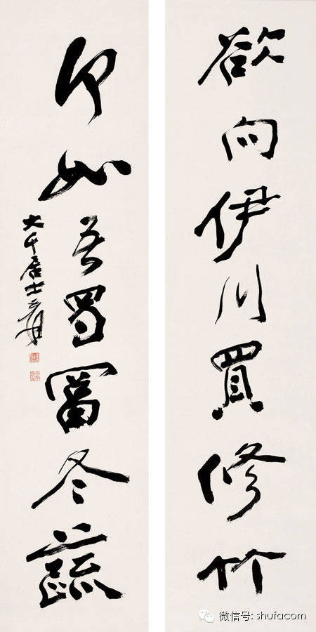 张大千虽不创作对联,但在刊物上见过他书写的一副集句联(台北国际摄影社拍摄),这副联语如下: