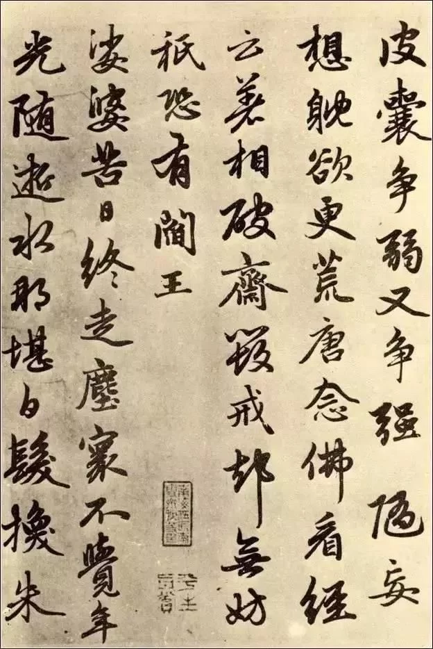 这段阮元的跋语,表明了《争座位帖》的历史价值与审美特征。“熔金出冶,随地流走”,钢水刚从冶炉中流出,凝重、然,比喻极为贴切。而结字,幽缓舒和,正中见奇,撇开了其写楷书的板正,加之线形粗细的变化,体现出一代儒雅中和的处世观,当然,作为一位书法大师的善变、巧思更展露殆尽。