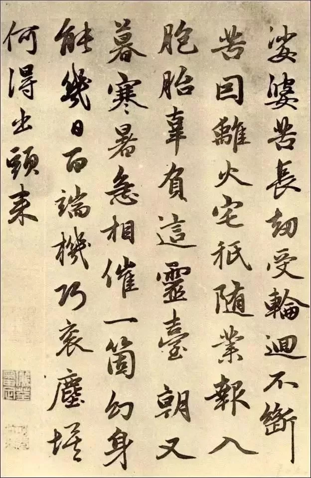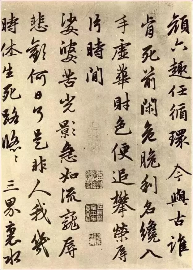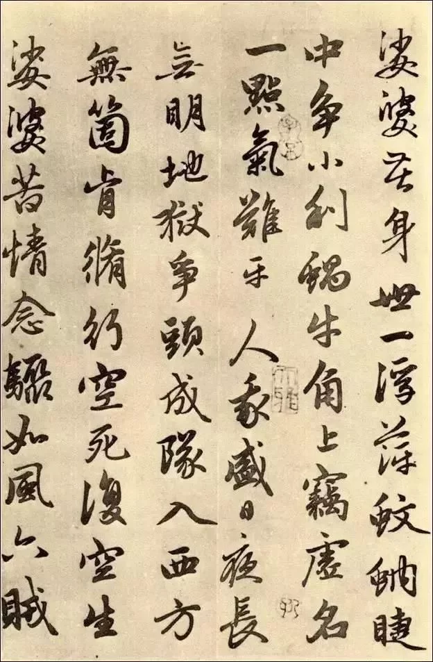 《争座位帖》如熔金出冶,随地流走,元气浑然,不复以姿媚为念。夫不复以姿媚为念者,其品乃高,所以此帖为行书之极致。