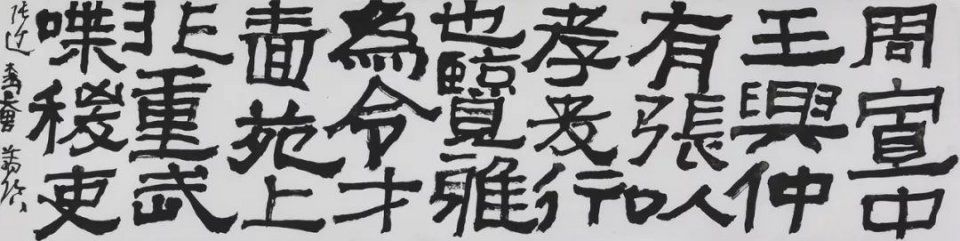 线条的质感有多种不同的表现形式。而往往两种或两种以上的质感形式之间相互统一,亦或相互对立。这些既对立、又统一的线条之间同时处在一件作品甚至一个字体之中相宜得彰,使作品变得丰富而生动。比如,朴厚、丰润与稚拙之间,刚健与工稳之间,灵动与华滋之间,柔韧与涩劲之间往往是密切相连或者是相互包涵的。在一条墨线中有时同时容多重质感要素,使线条富有内涵而耐人寻味。又比如,刚健与柔韧,工稳与灵动,华滋与涩劲又是性质相甚至隔隔不入的。但是,我们却不难发现这些相互对立的质感要素同时处在一件作品中而并不感到抵牾;反而正是由于它们之间随意、合理的组合,使作品的容量增大,时空拉长,变幻莫测,新意叠出。
